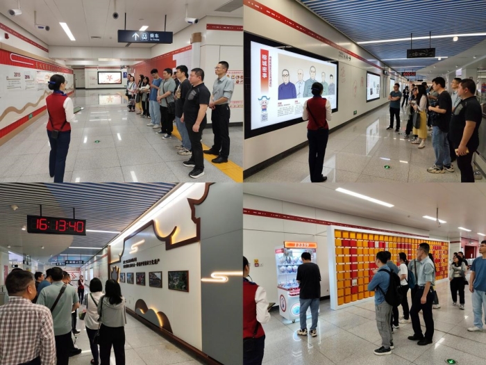 福州市国家安全保密宣教基地是福建省首个与地铁站深度融合建设的国安保密宣教阵地,以“12339”为设计理念,围绕一个总体国家安全观,国安和保密两个宣教主题,基本了解、沉浸体验和深入领悟三重学习层次,三片打卡区域以及古今秘史、榕城密事、警钟长鸣、闽都防线、领导批语、习语金句、法律法规、典论国安、书画海报九大展示版块。随着解说员的详细介绍,中心干部职工通过地铁车站广告灯箱、墙贴、立柱和站厅空旷场地等主题布置和展示陈列,以有趣亲切的方式体验了国安保密的历史沿革、技术发展和福州地方特色,沉浸式了解国家安全和保密知识,让干部职工牢固树立“国家安全、人人有责”的意识。