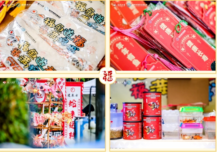 本次展览亮点纷呈,通过三大升级重构观展体验。一是参展规模扩大。参展企业数量比去年翻了一番,参展的金鱼品种也增加了玛丽狮头、玉兰福寿等新品种,进一步丰富了展览内容。二是互动体验升级。现场增设了多个互动环节,如福鱼知识有奖问答、福鱼祝福墙、福鱼DIY涂鸦、福鱼造型拍照框等,进一步增强市民游客的参与感和体验感。三是文化深度挖掘。借助LED屏滚动宣传福州金鱼相关知识,新设福州金鱼非遗技艺、文创产品展区,制作发放福鱼书签、福鱼笔袋等文创宣传品,提升福鱼品牌影响力。