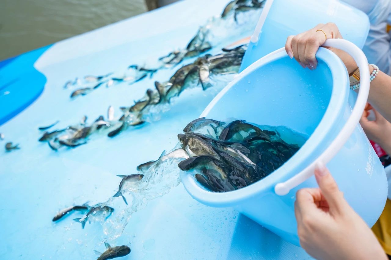 鱼苗入波,掌声回荡,两岸青年以情谊绘就生态与情谊的双重画卷。