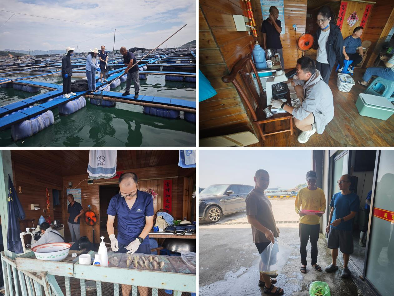 近日,技术中心防疫检疫部组织技术服务队,先后前往罗源县鉴江镇井水海区、连江县筱埕镇定海湾大黄鱼网箱开展大黄鱼养殖病害监测及病害防控指导服务。技术人员现场解剖检查、采集大黄鱼血液等组织样本,采用现场镜检、实验室PCR检测及快速检测等多种方法开展大黄鱼高温病害加密监测,并指导养殖户科学规范做好病害防治工作。对发生病情的养殖企业,指导养殖户采取隔离、消毒等措施控制病情,做好病死鱼无害化处理工作,严禁随意丢弃至海域,防止病原扩散和二次污染。同时,技术人员在现场向大黄鱼养殖户宣传推广《大黄鱼锥体虫病防控“八法”》《大黄鱼虹彩病毒病防控措施参考》等防控经验与措施。