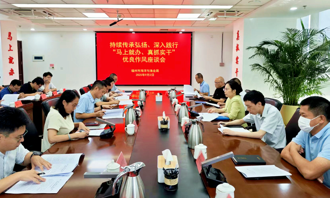 9月2日,福州市海洋与渔业局召开持续传承弘扬、深入践行“马上就办、真抓实干”优良作风座谈会,进一步凝聚共识、深化认知,扎实推进作风建设和机关效能建设。局党组书记、局长谢婧主持会议并讲话,局机关领导班子、各处室负责人、局属各单位主要负责同志及青年代表参加会议。