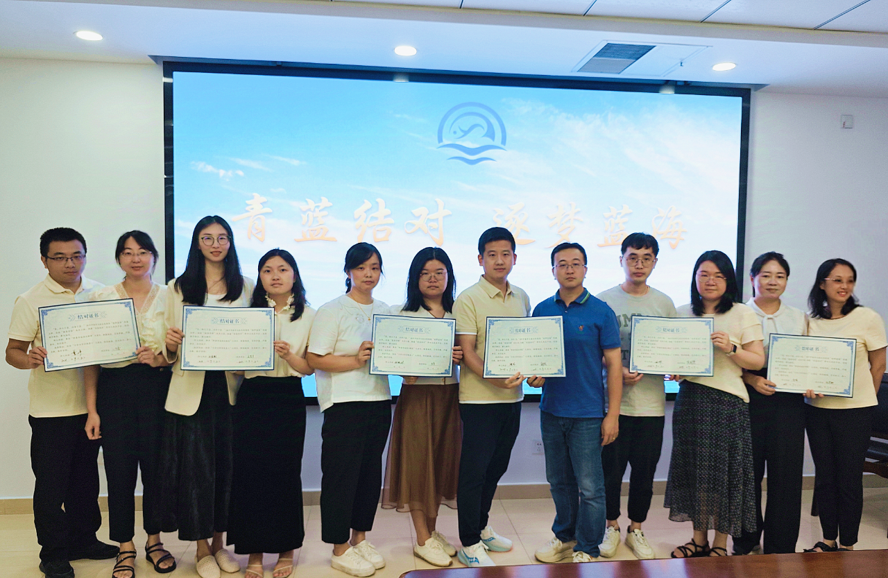 座谈会后,现场举行了“青蓝结对”仪式,7对“青蓝对子”依次上台签订结对证书,以“教学相长”激发成长动能,助力海渔青年更快成长为能够肩负事业发展重任的栋梁之才。