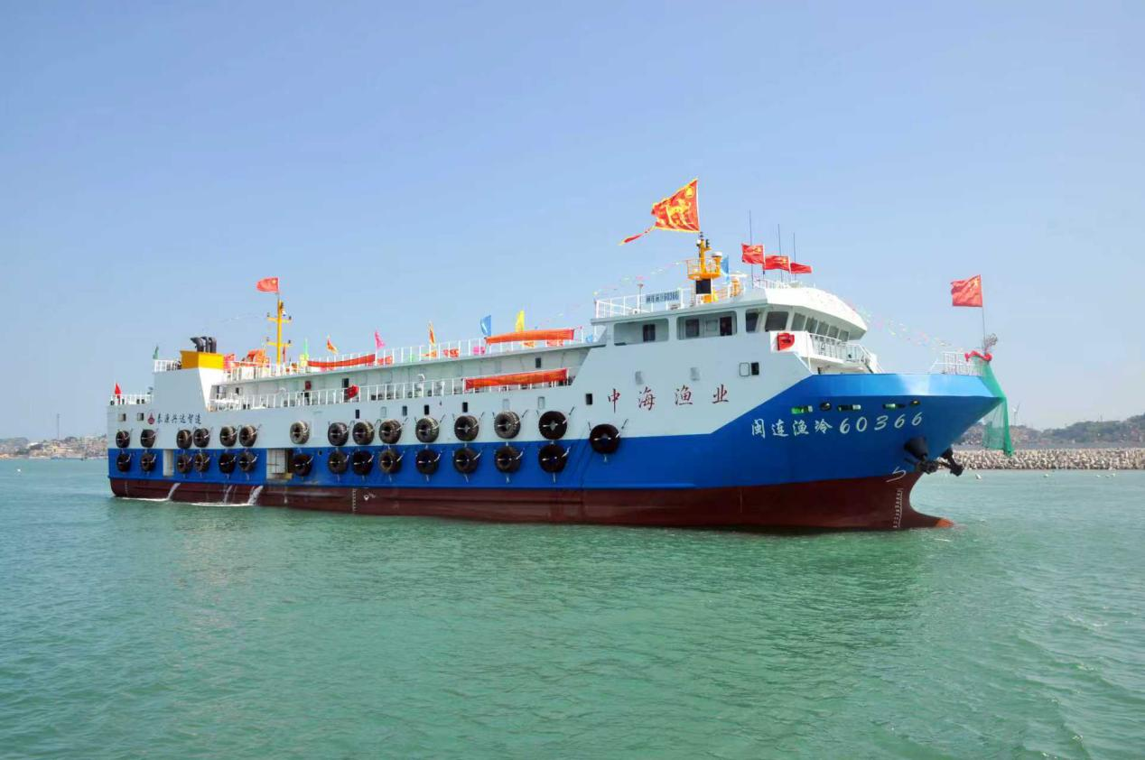 该船总长68.8米、总吨位2658吨,配备先进的全自动虾米加工生产线,日加工能力达120吨,年产值预计约5000万元。