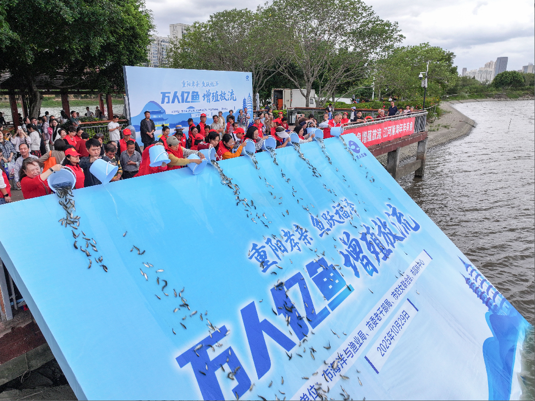 下午,花海公园内人头攒动、鱼群欢腾,“重阳孝亲 鱼跃福泽”万人亿鱼增殖放流活动在此温情启幕。老同志与志愿者小心翼翼地将一尾尾鲜活的鱼苗放入江中,在助力闽江水域生态修复的同时,也让鱼水共欢、人水和谐的理念焕发新生机。