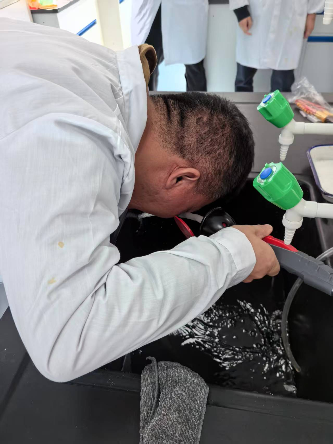 模拟事故发生后,参演人员迅速启动应急程序,规范使用洗眼器、应急水龙头等设施开展处置,整个过程反应迅速、操作有序,圆满完成既定演练任务。