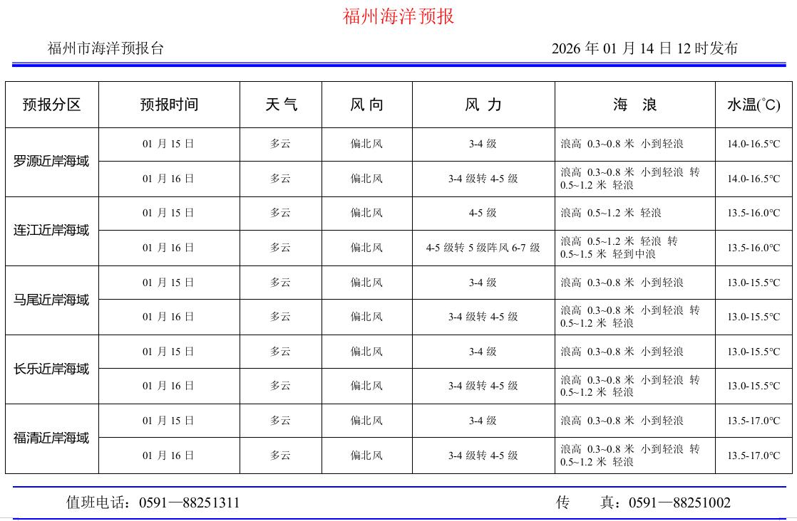 2026年1月14日福州海洋预报