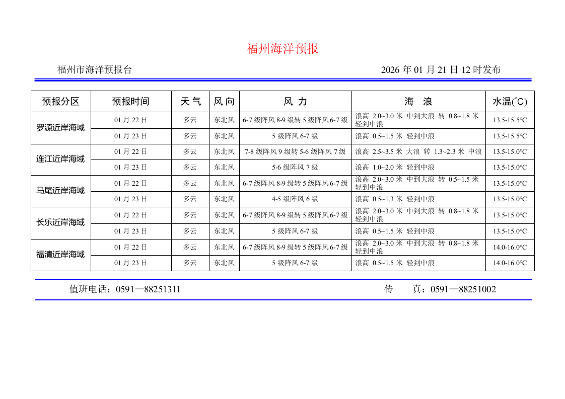 2026年1月21日福州海洋预报