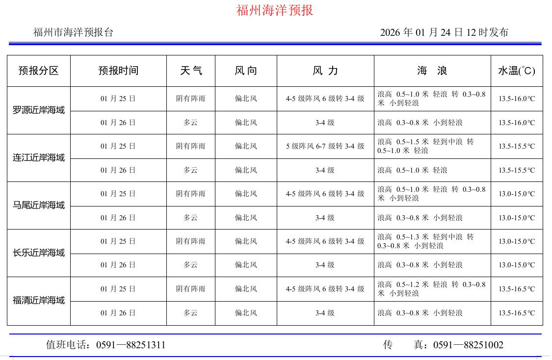 2026年1月24日福州海洋预报