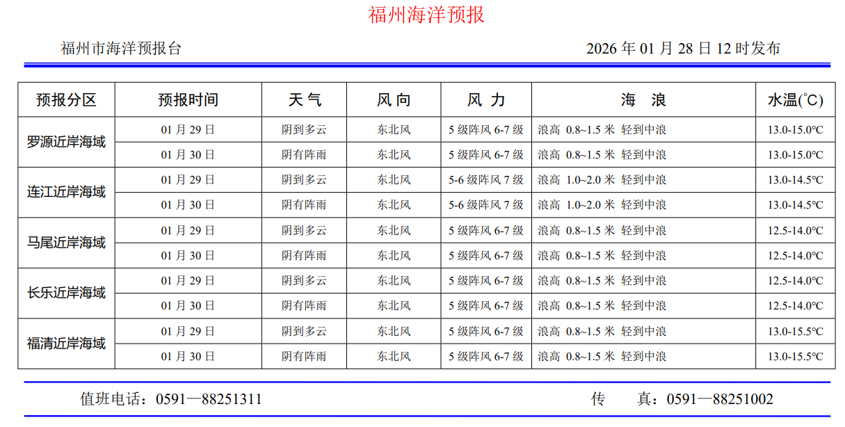 2026年1月28日福州海洋预报
