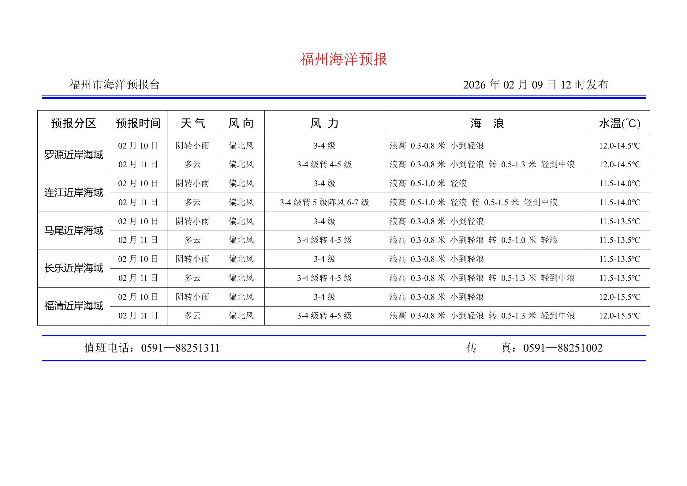 2026年2月9日福州海洋预报