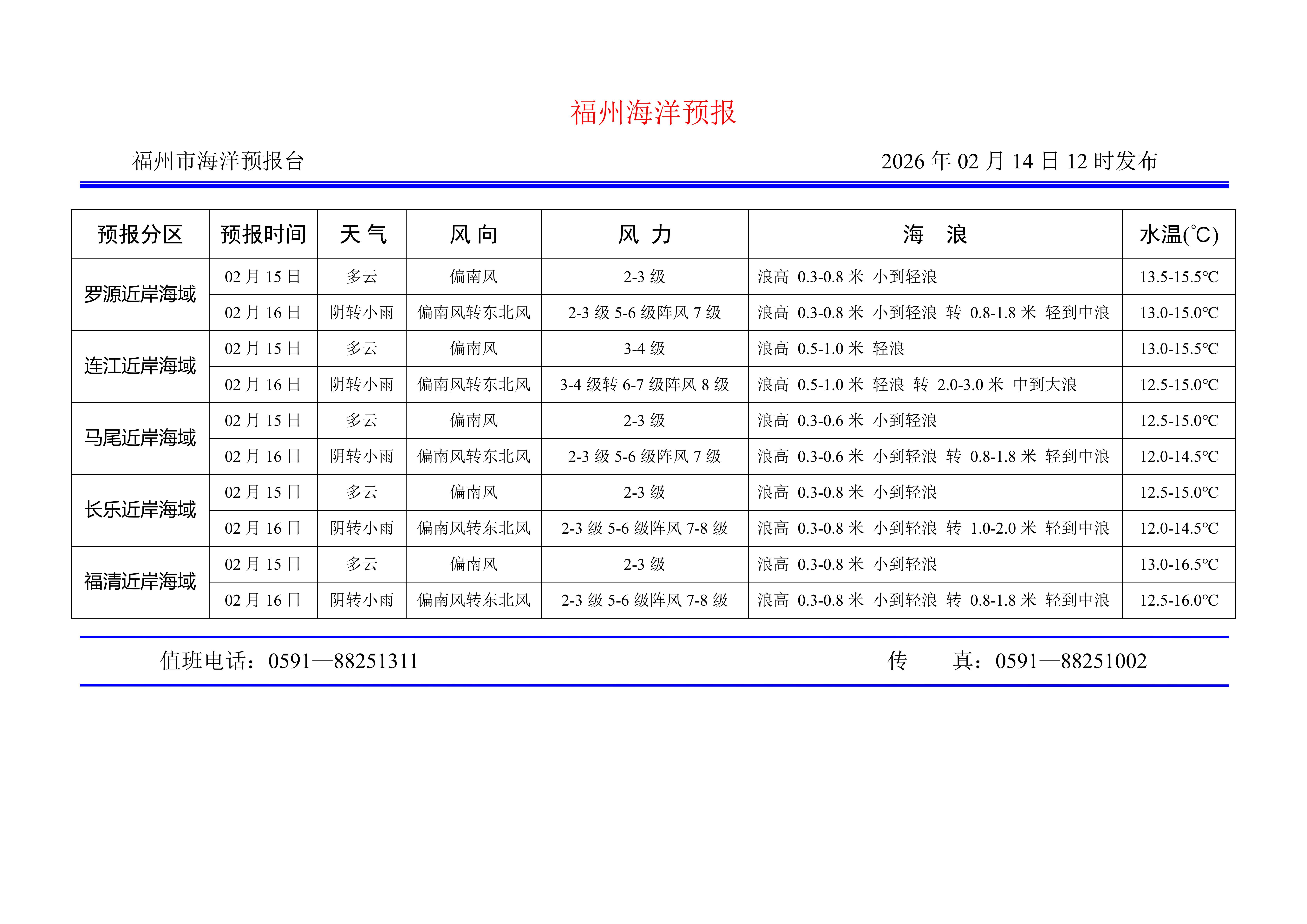 2026年2月14日福州海洋预报