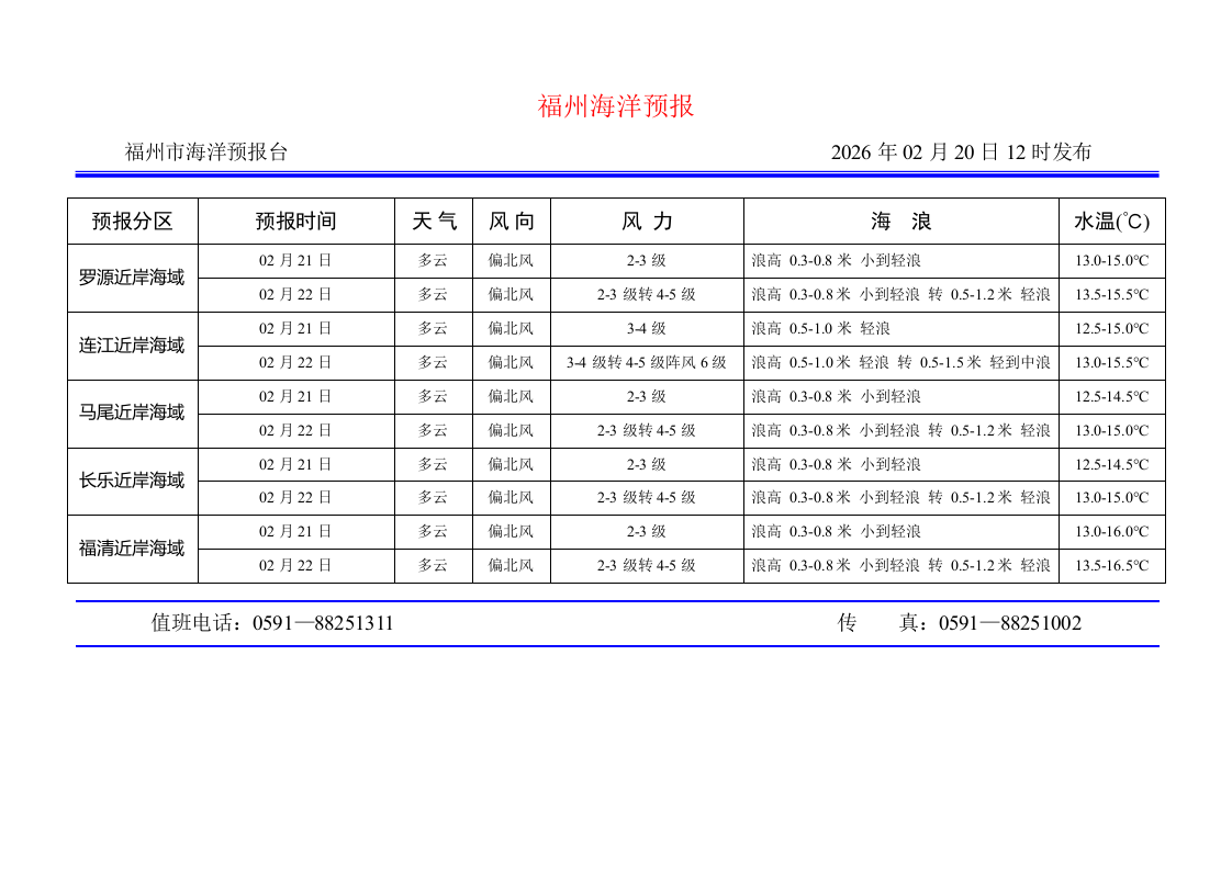 2026年2月20日福州海洋预报
