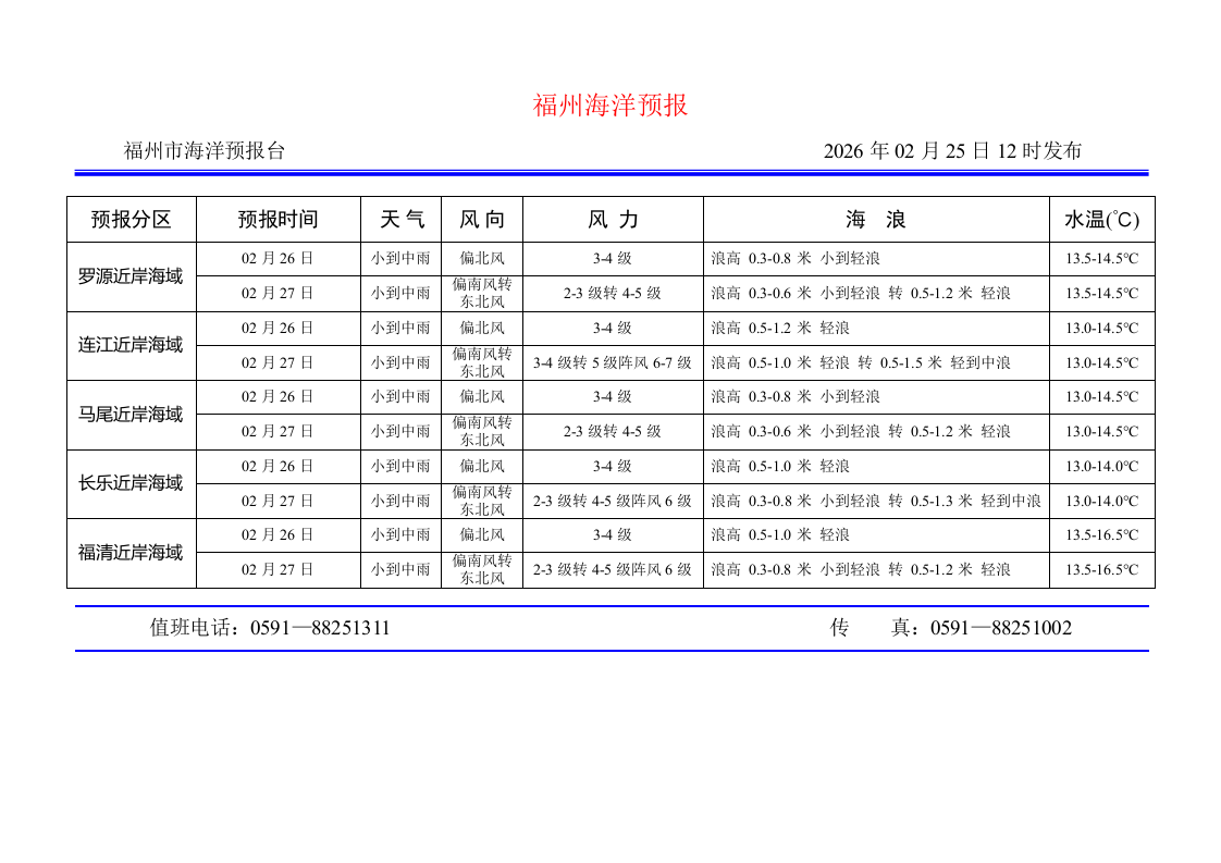 2026年2月25日福州海洋预报