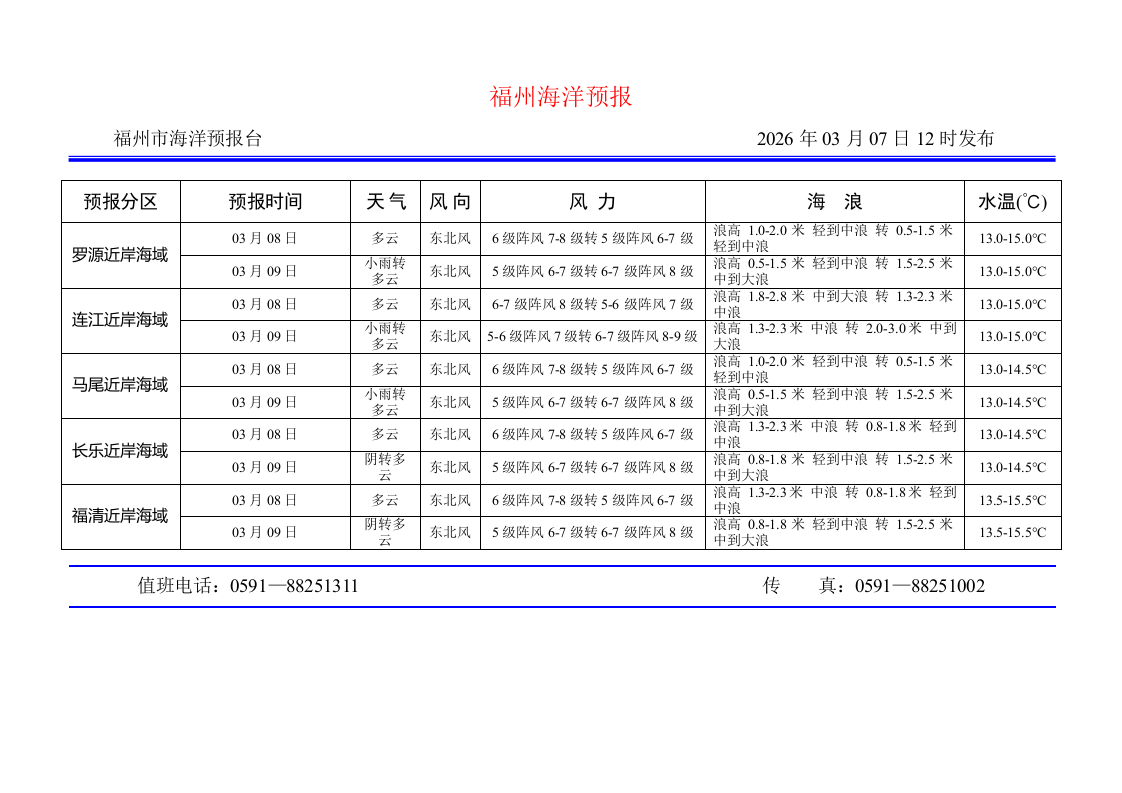 2026年3月7日福州海洋预报
