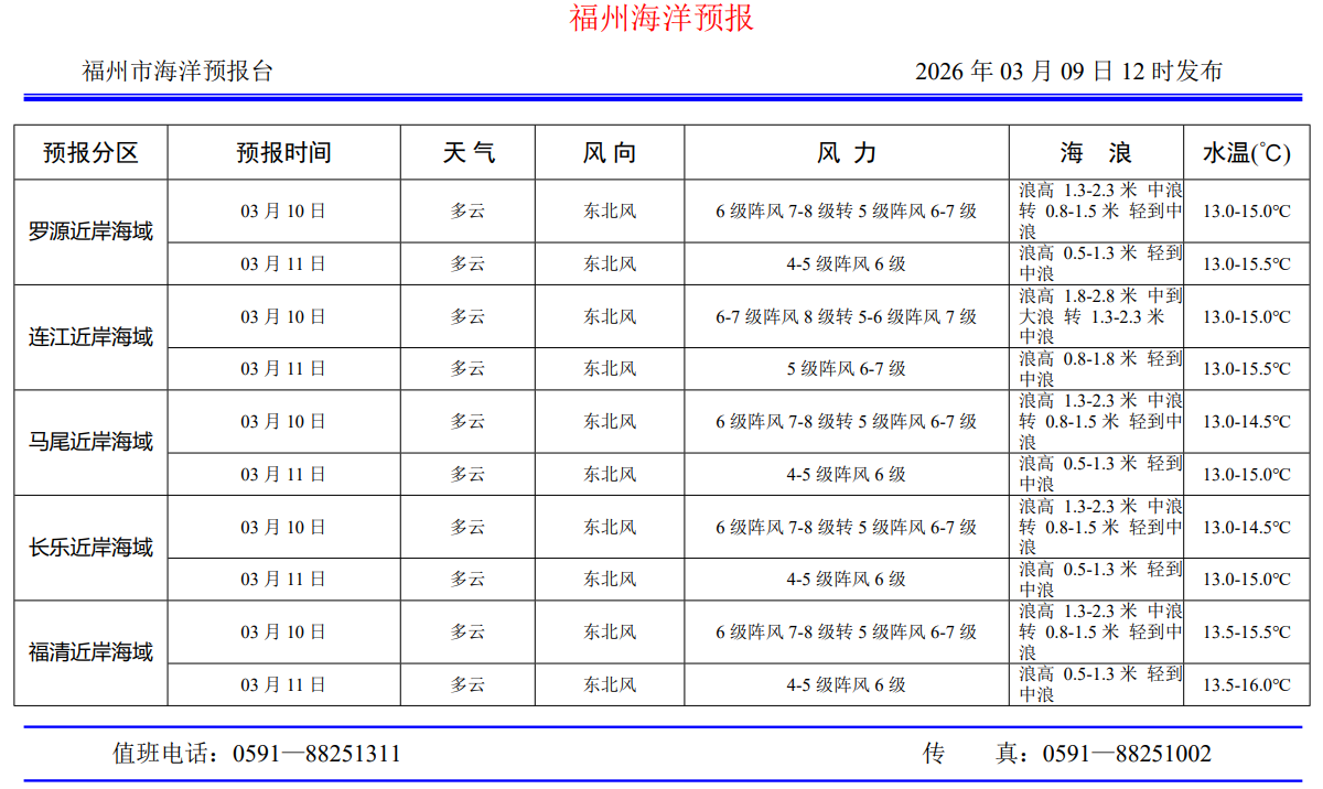 2026年3月9日福州海洋预报
