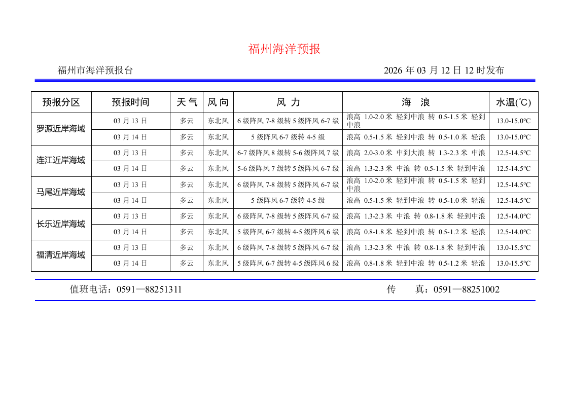 2026年3月12日福州海洋预报