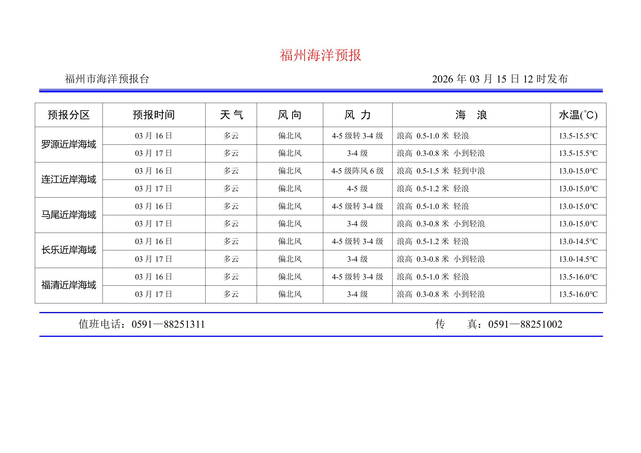 2026年3月15日福州海洋预报