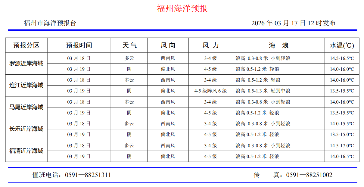 2026年3月17日福州海洋预报