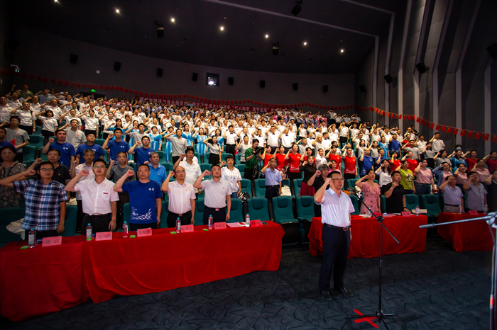 活动在庄严的国歌声中拉开帷幕,局党组书记、局长、一级调研员童桂荣带领全体党员起立,面向党旗庄严宣誓,重温入党时对党和人民作出的承诺,不忘初心,砥砺奋进,铿锵有力的宣誓声响彻会场,激荡着在场每一位党员的心灵。