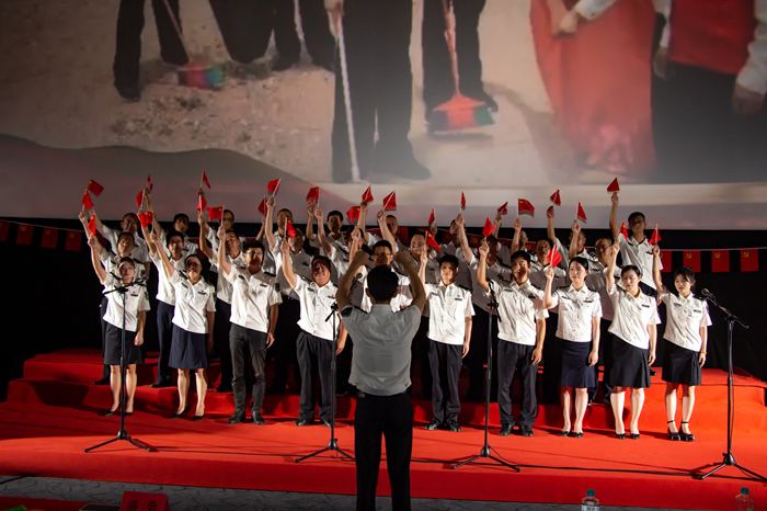 最后,在时而饱含深情、时而高亢豪迈的歌声中,局机关全体干部职工挥舞党旗齐唱《没有共产党就没有新中国》,向伟大的中国共产党致敬,祝愿伟大的祖国繁荣昌盛,将全场氛围推向高潮。