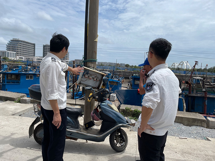 同时,区海渔局成立以党总支书记为总带班领导、党员干部24小时轮班在线值守的值班工作机制,通过渔船动态监控平台和辖区内渔港、澳口的监控探头,加强在港渔船的跟踪管控,密切关注台风动态,收集、汇总当前第5号台风“杜苏芮”的动态。7月26日,区海渔局共派出12名党员干部深入潭头、漳港、松下等渔港码头一线做好在港渔船的检查。
