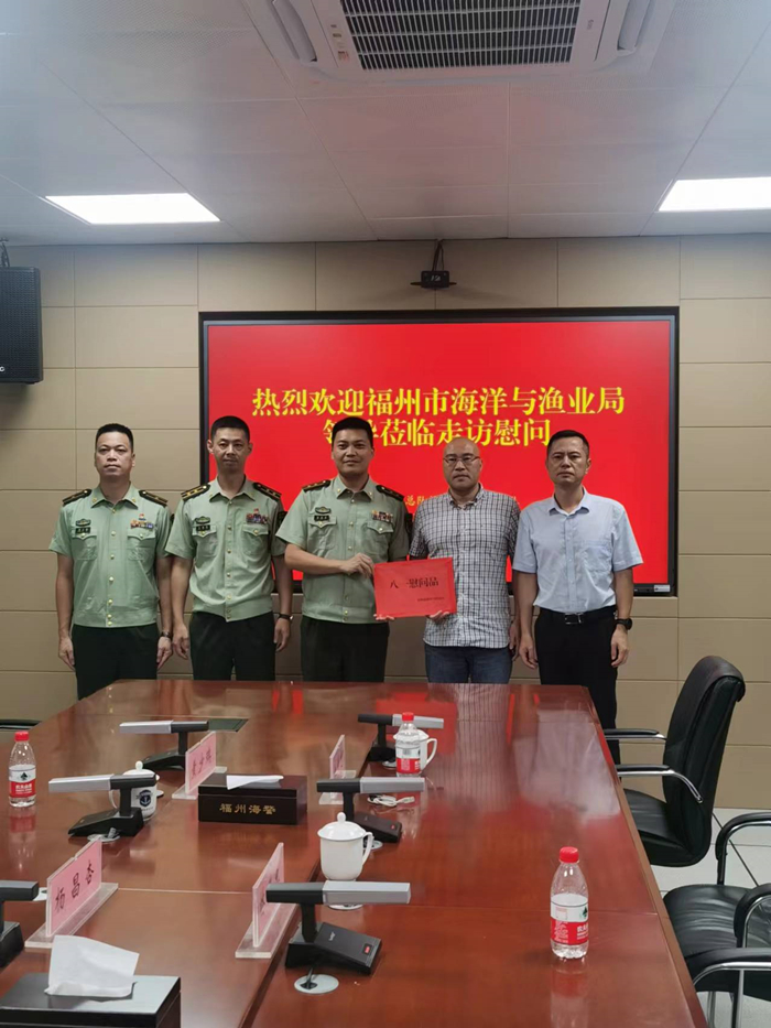 在中国人民解放军建军97周年之际,福州市海洋与渔业局党组成员、副局长林燕忠,福州市海洋与渔业执法支队支队长林步达等一行,前往武警海警总队福建支队福州大队开展“八一”走访慰问活动,共叙鱼水深情,共谱军地协同新篇章。