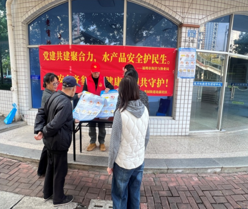 为推动近邻党建工作走深走实,中共福州市海洋与渔业局机关委员会与中共福州市晋安区茶园街道站前社区委员会签订共建协议,3名涉渔公益人员获得福州市首批水产品质量安全公益监督员聘书。随后,在首期“站邻福渔汇”大讲堂,市海洋与渔业技术中心业务骨干吴超凡讲解常见的水产品质量安全问题,指导群众如何选购水产品。