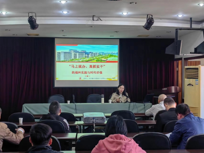 讲座邀请福州市委党校余娴丽老师担任主讲人。余老师从“马上就办、真抓实干”精神的提出背景、基本要求与时代价值等方面深刻阐述了“马上就办、真抓实干”精神的丰富内涵与重大意义。上世纪八九十年代,为了抓住发展机遇、优化营商环境、改进机关作风,“马上就办、真抓实干”精神在改革开放的浪潮中应运而生。“马上就办、真抓实干”精神以“效”字为核心、以完善体制机制为抓手、以加强能力建设为重点,旨在提高办事积极性、提升政府执行力来促进高质量发展,是马克思主义人民性的具体体现、实践性的生动演绎和发展观的时代彰显。历史照亮现实,思想指引前行。“马上就办、真抓实干”,具有穿越时空的历史意义和现实指导意义。