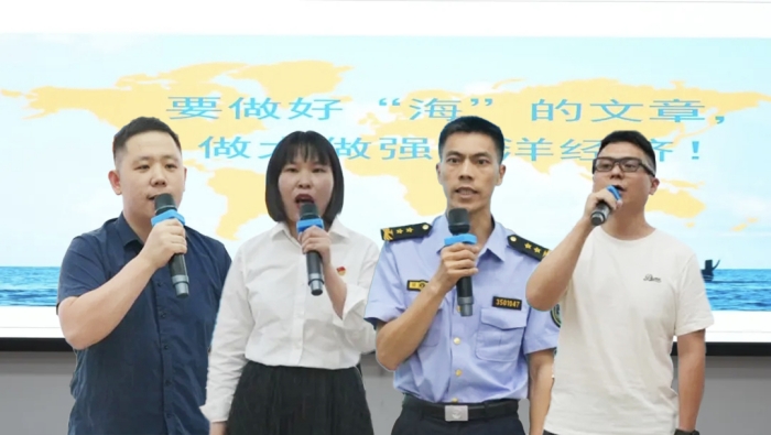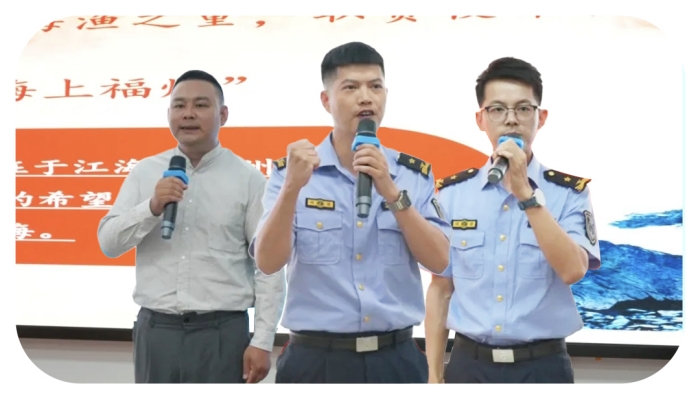 演讲比赛现场,10名各党支部选送的海渔青年干部在台上以言抒怀,以声筑梦。他们以自信饱满的姿态和激情洋溢的语言,结合岗位职责、亲身经历,从身边人、身边事说起,分享自身对渔业品牌建设、渔业安全生产监管、海上执法、海洋预报等具体工作的感悟,畅谈加快建设全国海洋经济发展示范区、打造践行“大食物观”先行示范区、打造更高水平的“海上福州”的思路,抒发青年海渔干部经略海洋、向海图强的自豪感和使命感。