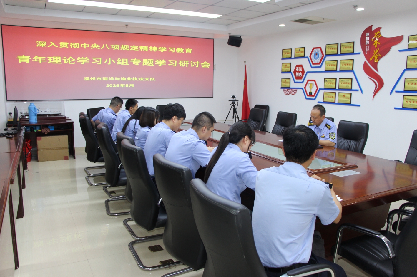 5月29日,市海洋与渔业执法支队组织青年理论学习小组集体学习中央八项规定及其实施细则精神。支队主要领导出席并点评指导,支队全体青年干部参加学习。