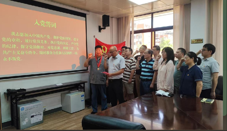 6月27日,技术中心党员齐聚会议室,举行“光荣在党50年”纪念章颁发仪式,技术中心党支部专职副书记林雄向老党员龚孟忠颁发“光荣在党50年”纪念章。龚孟忠表示,“共产党员永不退休”,他会始终牢记党员身份,坚守初心本色,一如既往地关心支持海洋渔业技术工作,为福州水产种业创新发展贡献智慧和力量。现场党员干部纷纷表示要以优秀老党员为榜样,牢记宗旨使命,筑牢信仰之基,汲取奋进力量。