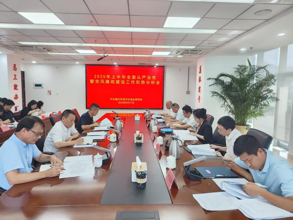 8月27日,市海洋与渔业局召开2025年上半年全面从严治党暨党风廉政建设工作形势分析会,认真总结分析2025年上半年全面从严治党和党风廉政建设工作形势,部署安排下半年工作。市海渔局党组书记、局长谢婧主持会议并作部署讲话,驻市农业农村局纪检监察组组长周建国莅会指导。局领导、局属单位主要领导、机关各处室负责人参加会议。