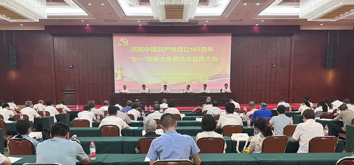 6月27日上午,市海渔局召开庆祝中国共产党成立103周年“七一”表彰大会暨机关党委、机关纪委换届选举大会。全局系统120多名党员参加会议。