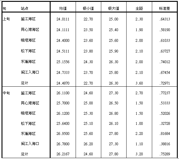 表2福州市主要水产养殖海域2025年6月上旬至6月中旬水温(℃)变化情况
