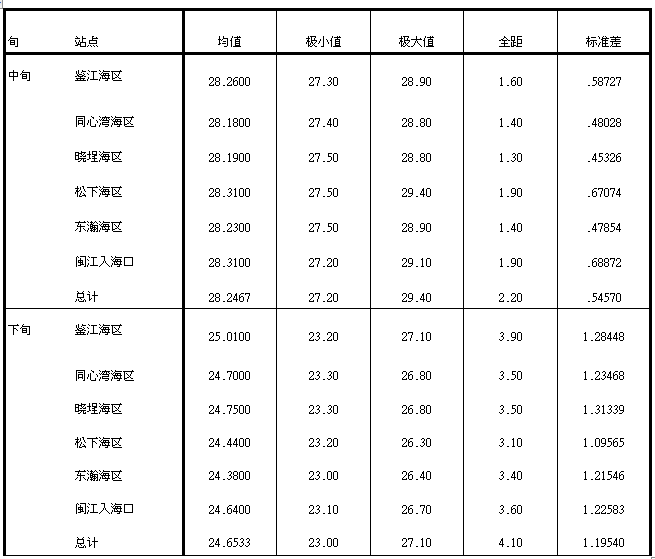 表1福州市主要水产养殖海域2025年10月中旬至10月下旬水温(℃)变化情况