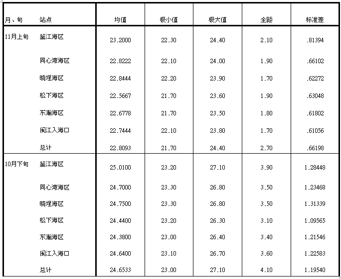 表1福州市主要水产养殖海域2025年10月下旬至11月上旬水温(℃)变化情况