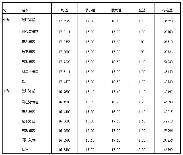 表1福州市主要水产养殖海域2025年12月中旬至12月下旬水温(℃)变化情况