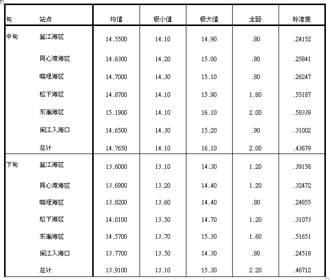 表1福州市主要水产养殖海域2026年1月中旬至1月下旬水温(℃)变化情况