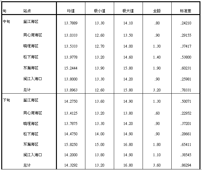 表1福州市主要水产养殖海域2026年2月中旬至2月下旬水温(℃)变化情况